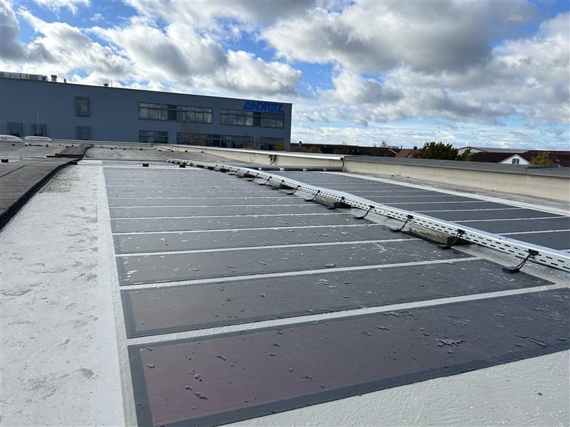 Für die Vorbereitung der Dachfläche arbeitete Heliatek eng mit seinem Partner Triflex zusammen. Durch die fachgerechte Beschichtung und Untergrundvorbereitung wurde eine geeignete Basis geschaffen, um eine zuverlässige und langlebige Installation der Module auf dem Flachdach zu ermöglichen.